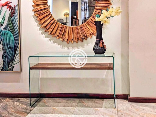Bent Glass Console Table With Dark Oak Shelf Price in Kenya | Zenith Furnitures
